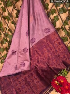 Elegant Pink and Gray Semi Soft Silk Saree with Floral Motifs and Rich Pallu