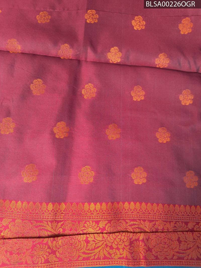 Peach and Green Blended Soft Silk Saree with Elegant Zari Pallu and Floral Border