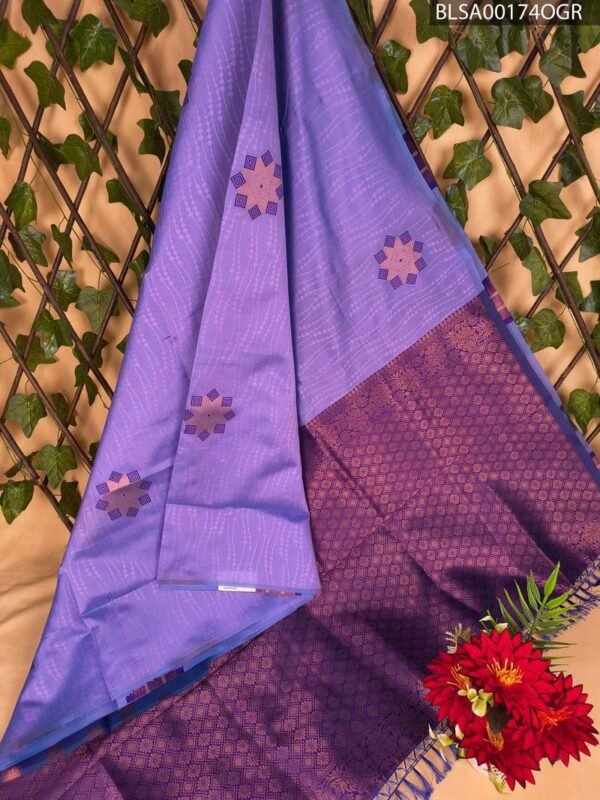 Tags: Blue Pallu, festive wear, Indian Ethnic Wear, lavender saree, Semi Soft Silk