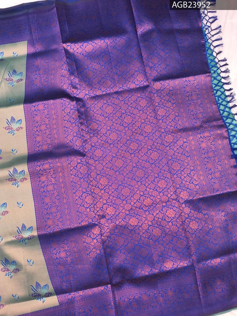 Elegant Blue and Green Fancy Saree with Beautiful Floral Motifs and Rich Border Design