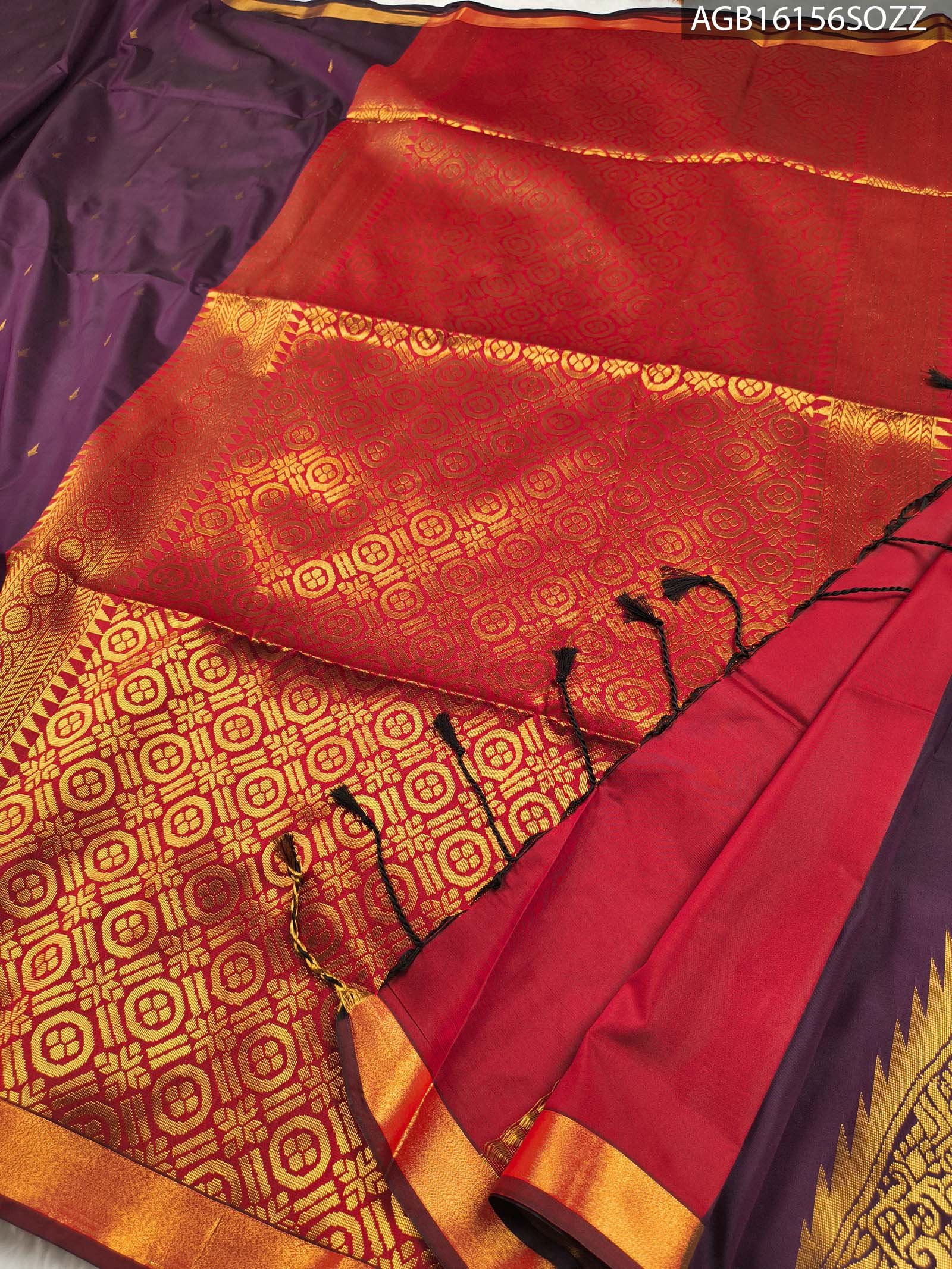 Elegant Purple Soft Silk Saree with Rich Red Pallu and Zari Border