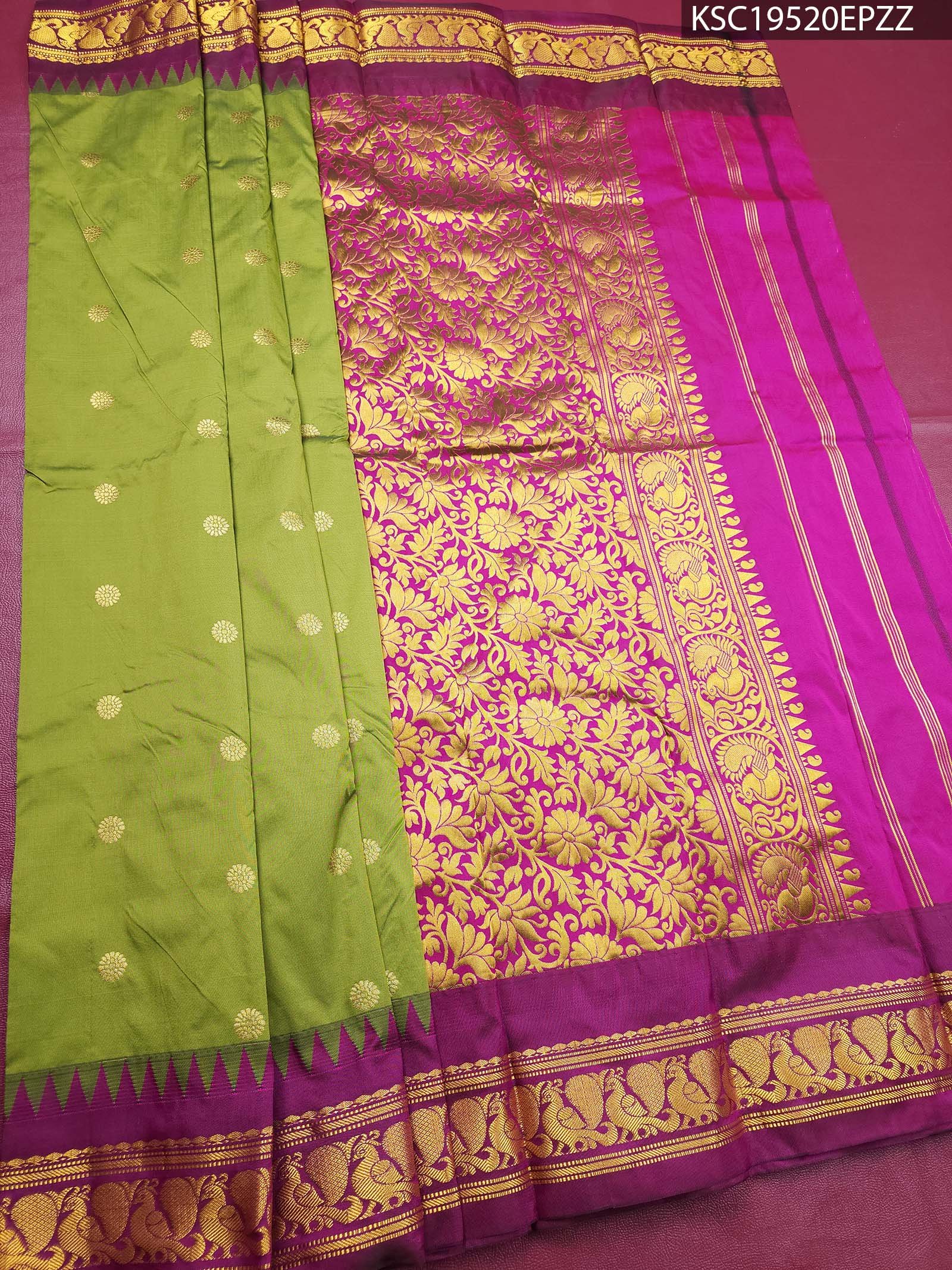 Green and Magenta Blended Soft Silk Saree with Floral Brocade and Rich Zari Border