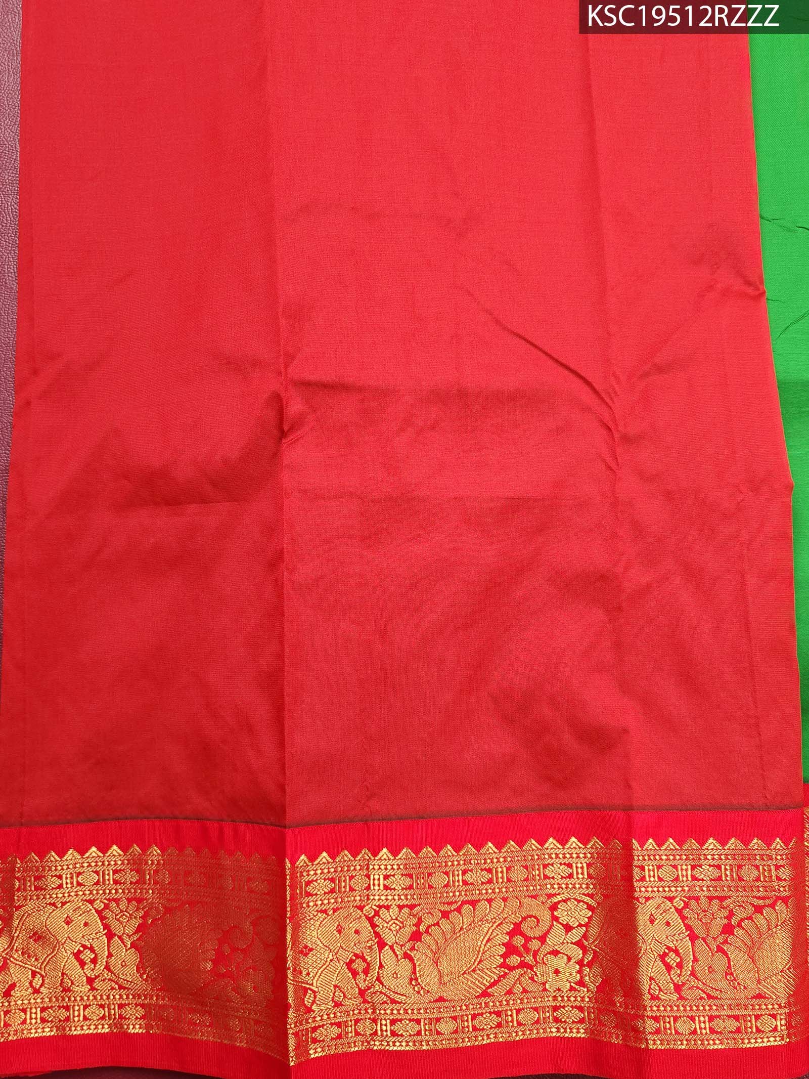Green and Red Blended Soft Silk Saree with Elephant Motifs and Rich Zari Border
