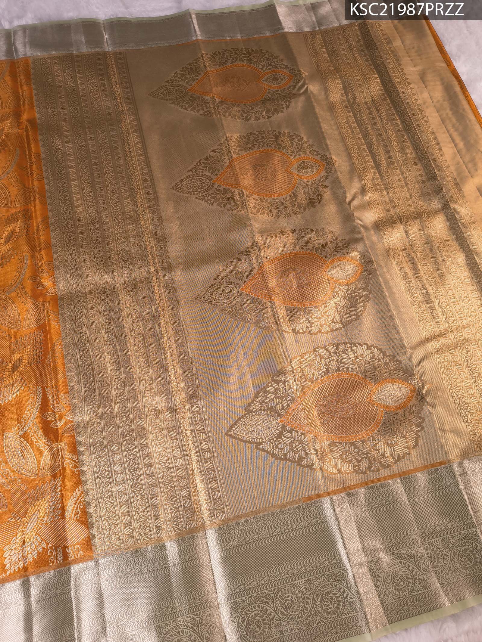 Orange Coloured Tissue Silk Saree with Paisley Motifs and Zari Woven Border