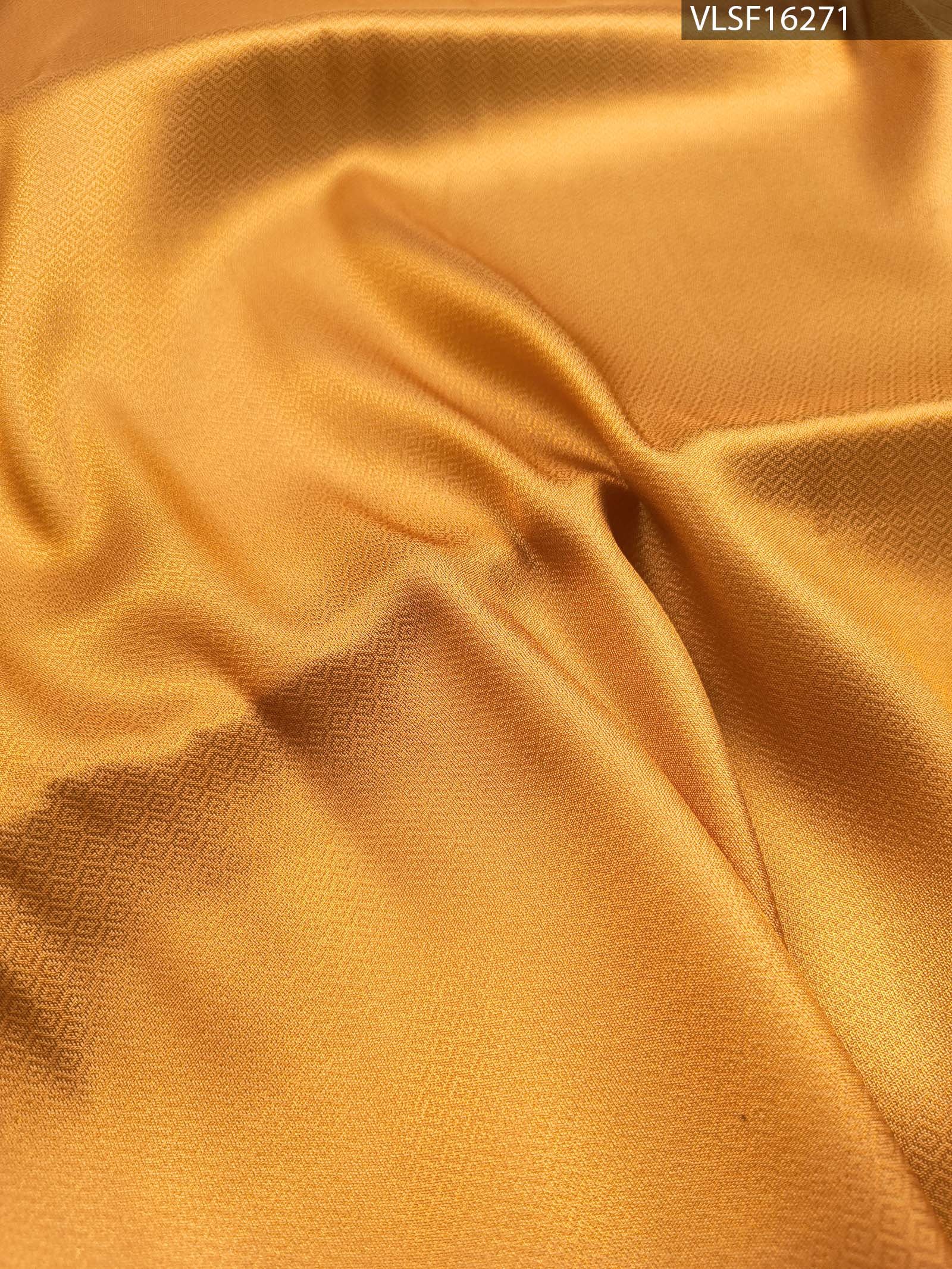 This exquisite saree features a serene pastel blue body embellished with intricate floral motifs, exuding an aura of timeless beauty. The fabric’s delicate texture and vibrant colors create a captivating visual symphony. The pallu, adorned with a seamless mustard hue, adds a touch of grandeur, making it perfect for festive occasions. A matching blouse piece completes the ensemble, allowing for a personalized finish.