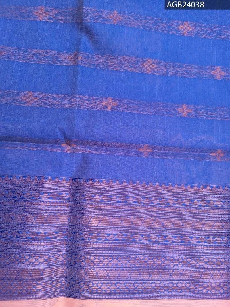 This saree features a peach body adorned with intricate motifs that add a touch of charm. The rich purple pallu showcases elegant designs that enhance its luxurious appeal. The blouse complements the overall look, making it perfect for various occasions. The combination of colors and patterns embodies a blend of tradition and modern elegance.
