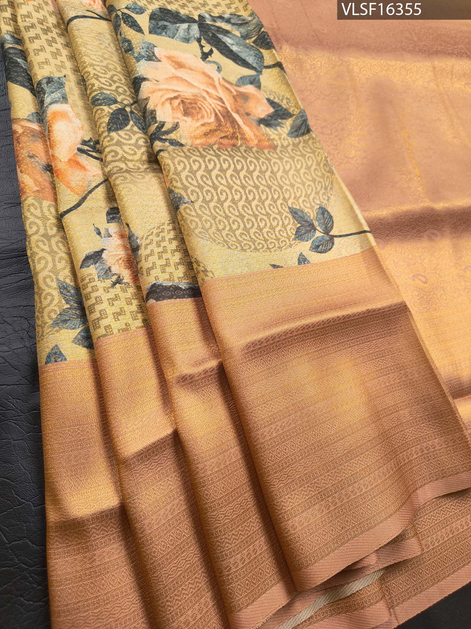 Tags: elegant saree, fancy silk saree, floral saree, party wear saree, peach saree