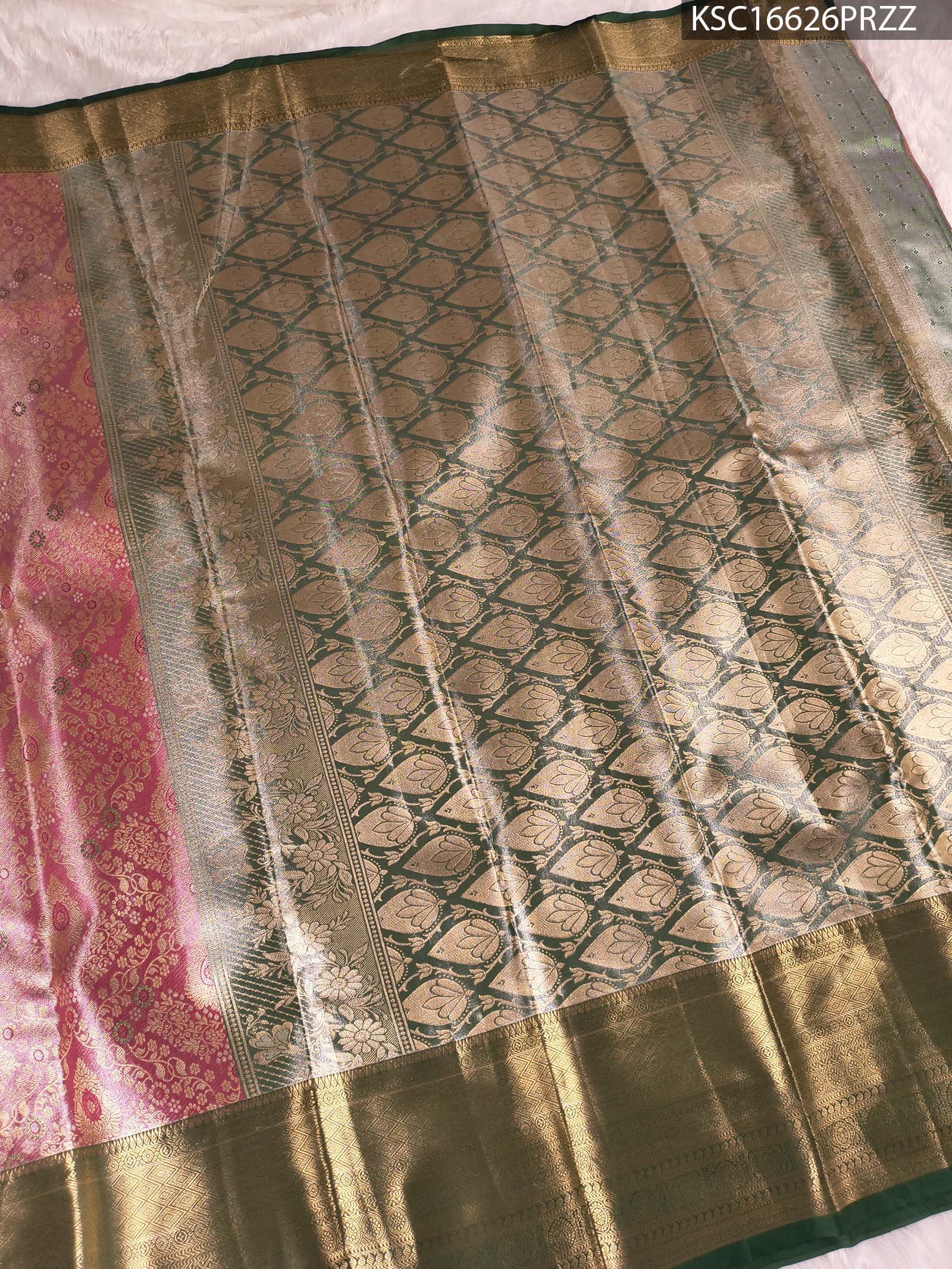 Pink and Gold Tissue Saree with Rich Brocade Pallu and Intricate Zari Border