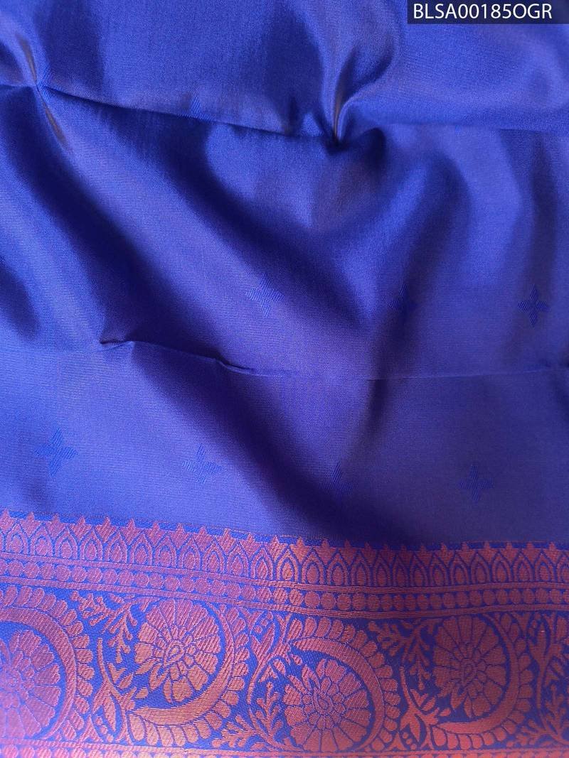 Embrace the beauty of traditional elegance with this stunning pink and blue saree in Semi Soft Silk.